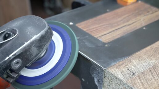 Зачистка внешнего угла на сатинированной нержавейке.