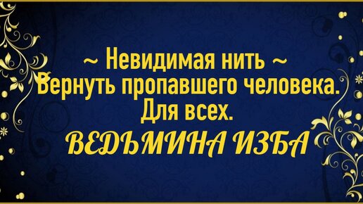 НЕВИДИМАЯ НИТЬ..ВЕРНУТЬ ПРОПАВШЕГО ЧЕЛОВЕКА..ДЛЯ ВСЕХ..ВЕДЬМИНА ИЗБА_ИНГА ХОСРОЕВА