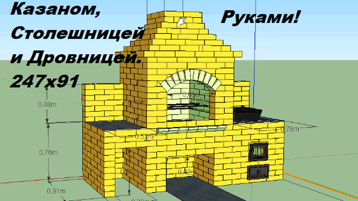 20. Барбекю 2.47 х 91 с Печью под Казан,Столешницей, Дровницей. Своими Руками!