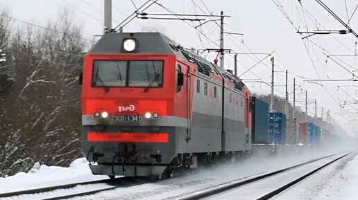 "Новинка на МЖД!" Электровоз 2ЭС6-1340 "Синара" с контейнерным поездом.