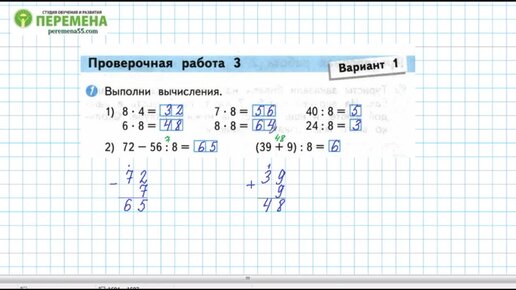 Страница 34 вариант 1 решение. Математика 3 класс. Проверочные работы. Волкова С. И. Школа России.