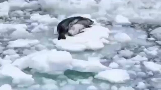 Мать морского леопарда отдыхает со своим детенышем.