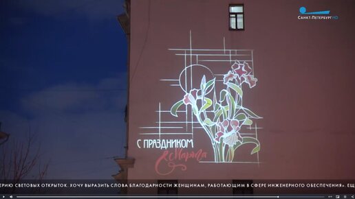 Фасады петербургских домов осветили праздничными проекциями к 8 марта
