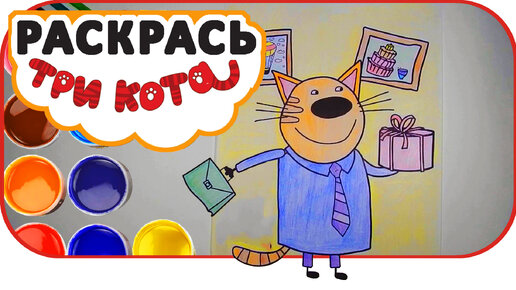 Раскраски для детей ТРИ КОТА ПАПА | Учим цвета | Распечатать раскраски бесплатно