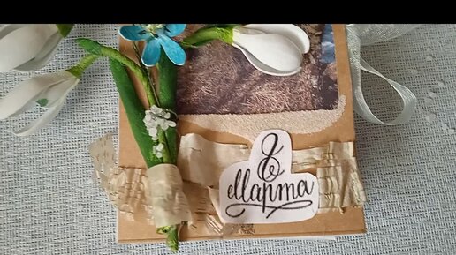 Нежная открытка-шоколадница с первоцветами из пакета от пельменей