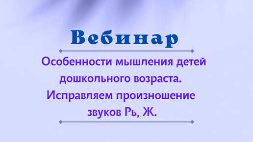 Особенности мышления детей дошкольного возраста. Исправляем произношение звуков Рь Ж.