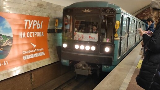 Метропоезд 81-717.5М (МВМ) №2805/2806 прибывает на станцию метро Заельцовская