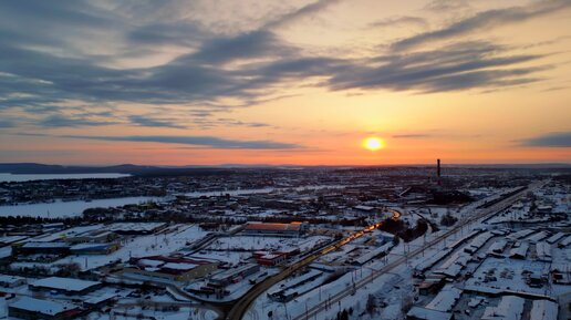 закат аэросъёмка город Братск (Энергетик)
