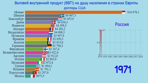Валовой внутренний продукт (ВВП) на душу населения в странах Европы