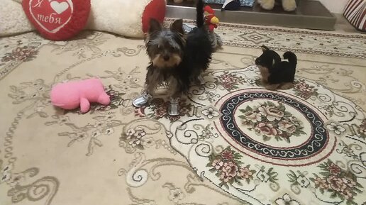 йоркширский терьер Жорик Первый подарок сапожки Учимся в них ходить
