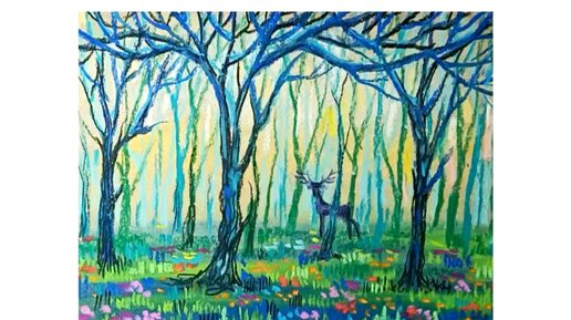 🌲🦌🌲Олень в сказочном лесу. Рисунок сухой пастелью. 🌲🦌🌲Иллюстрация.