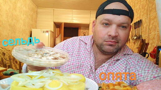 МУКБАНГ маринованные опята, селедка и картошка/обжор завтрак