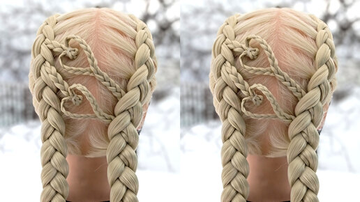 Косички с сердечками/Легко и просто/Подробный урок 🌿🌿🌿