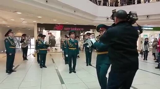 Посетительницам торгового центра в Казани росгвардейцы исполнили музыкальный номер и вручили цветы