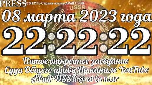 🔔 Прямой ЭФИР 🎥💥 08.03.2023 в 22:22:22 МСК ❗️Пятое открытое заседание Суда Общего права ⚖️❗️