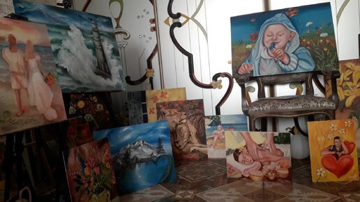 Маленькая выставка картин к 8 марта. Красивые цветы .