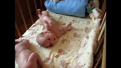 Малышки двойняшки учатся переворачиваться сразу после 1-го массажа. "Вот так! А ты говоришь..." (бабушка). Здесь малышам почти 3 месяца.