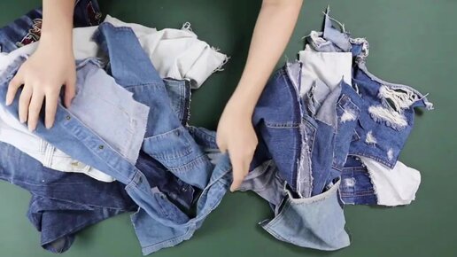 Собрала все порванные Джинсы и сшила новую вещь