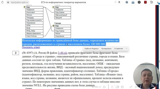 С помощью =ВПР() решаем задачу из ЕГЭ № 3 автора А. Рогова про города и страны (№ 4397на "Полякове" или № 2140 с сайта компегэ)