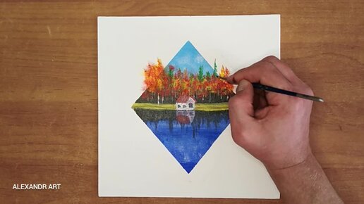 Лёгкий пейзаж с домиком у воды/роспись акрилом /
