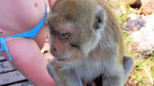 Обезьяна отжигает на острове Ко Лан в Таиланде