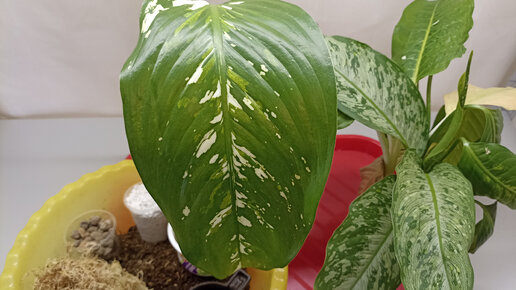 Детки аглаонем и диффенбахий. Результат укоренения через три недели после обрезки. Посадка диффенбахии.