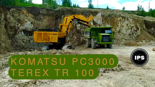 Экскаватор KOMATSU PC3000 грузит карьерный самосвал TEREX TR 100.
