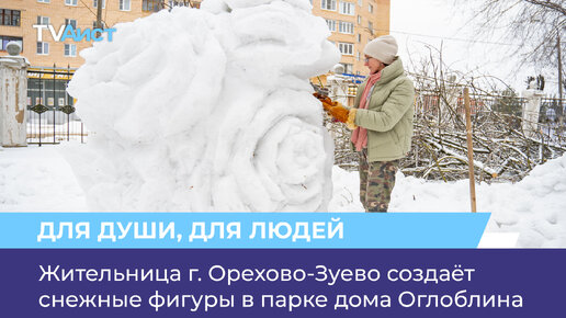 Жительница г. Орехово-Зуево создаёт снежные фигуры в парке дома Оглоблина