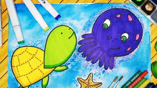 Рисунок черепашки. Рисунок осьминога. Морские обитатели. Рисование. Поэтапное рисование. Рисовать по видео. Рисунки для срисовки.