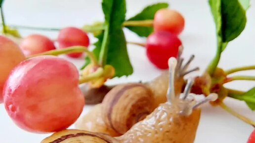 Улитки и черешня из полимерной глины
