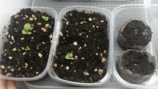 Как выглядят мои эустомы и петунии через 2 недели после посева