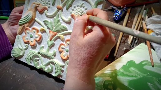 Роспись изразцов с птичками