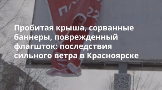 Пробитая крыша, сорванные баннеры, поврежденный флагшток: последствия сильного ветра в Красноярске