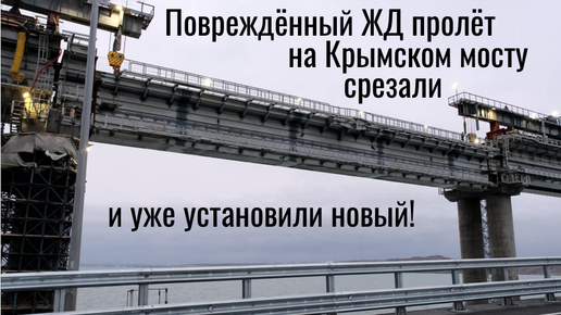 Повреждённый взрывом и пожаром ЖД пролёт Крымского моста срезали и установили новый