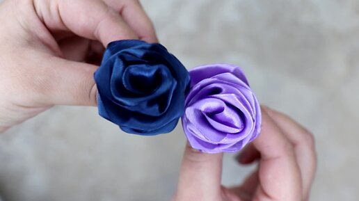 Как сделать Розочки за 2 минуты из атласной ленты 2,5 см / Простой способ без шитья