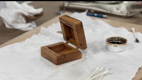 Изготовления шкатулку из дерева для помолвочного кольца в мастерской.