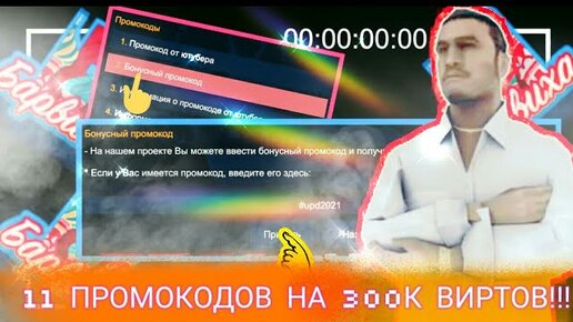 11 ПРОМОКОДОВ НА 300.000 ВИРТОВ!!! (Барвиха рп)