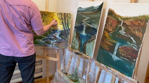 Master class (Yashurkaev method) simultaneous work on several canvases in oil on 3 canvases 2-этап.. Зилавди Яшуркаев.
