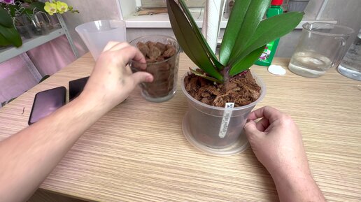напитываем орхидеи в варёнке / ожидал что орхидея больше хлебнёт воды
