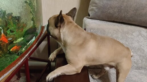 Мафик 🥰 любуется рыбками.