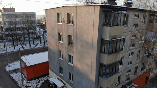 Утепление торцов пятиэтажки пенопластом по технологии СФТК Мокрый Фасад в Солнечногорске в 1997 году. Декоративная штукатурка Короед, русты