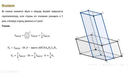 Изменение объема и площади боковой поверхности призмы