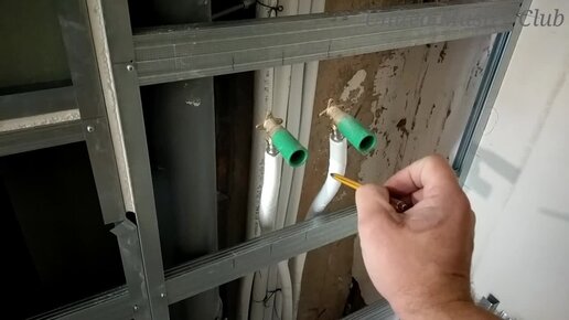 Крепление водорозетки для смесителя на гипсокартоне. Душевая кабина.