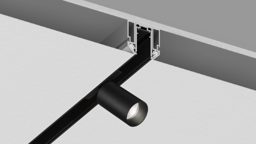 Встроенный трек для установки в натяжной потолок с гарпунным методом крепления.