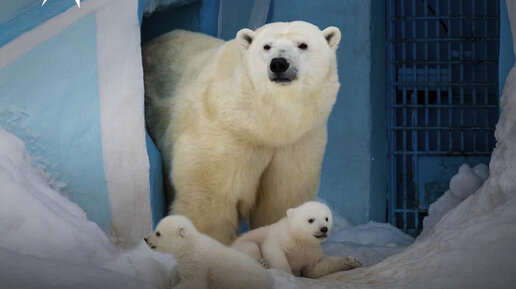 Белые медвежата на первой прогулке в Новосибирском зоопарке