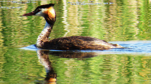Чомга - особенная птица, хотя и поганка. Плавает на глубине, возит птенцов на спине и строит гнезда на воде