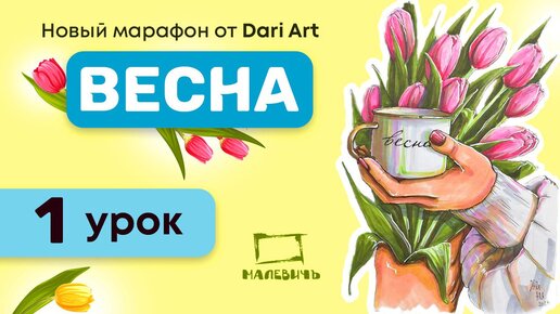 Далее: Рисуем скетч МАРКЕРАМИ! Марафон Весна, 2 урок!