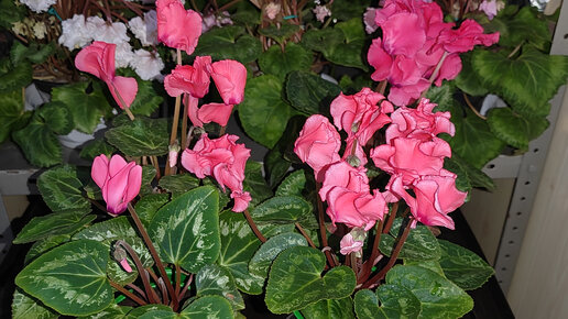 Цикламены.(Cyclamen) годовалые сеянцы посаженные в феврале 2022 года. Разница в цветении.
