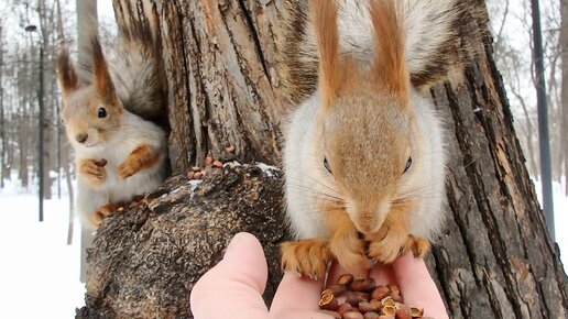 Две белки мирно едят орешки