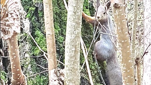 Неожиданная встреча с лесной белочкой в окрестностях нашей деревни. Жалко, что нечем было угостить